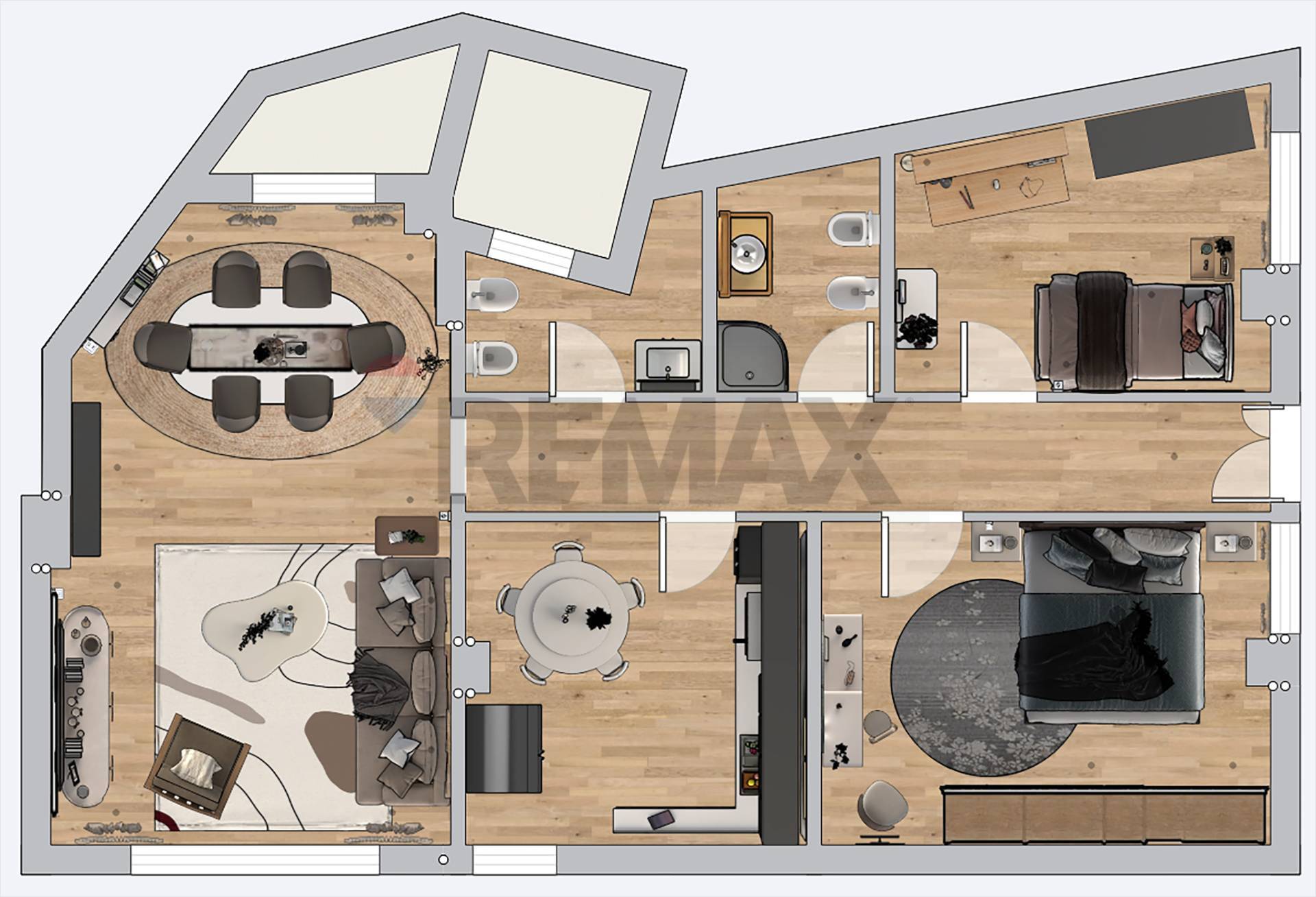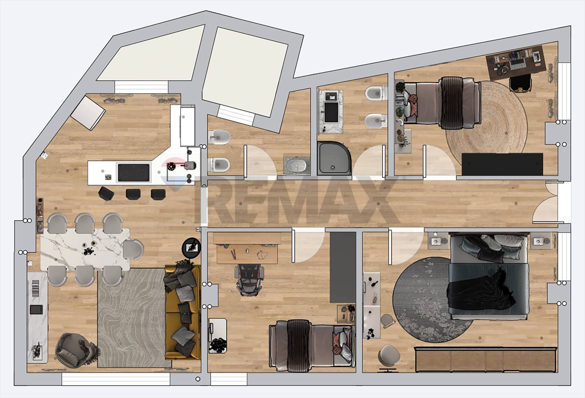 Possibile anche la trasformazione in quadrilocale. Cliccare sull'icona video per vedere una possibile trasformazione.