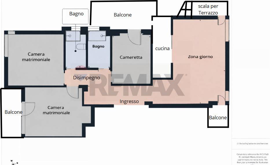 Dal balcone del soggiorno, tramite scala esterna, si accede al terrazzo sovrastante di circa mq 115, ideale per vivere gli spazi esterni. Completa la proprietà una soffitta di circa mq10, raggiungibile anche dalla scala condominiale.