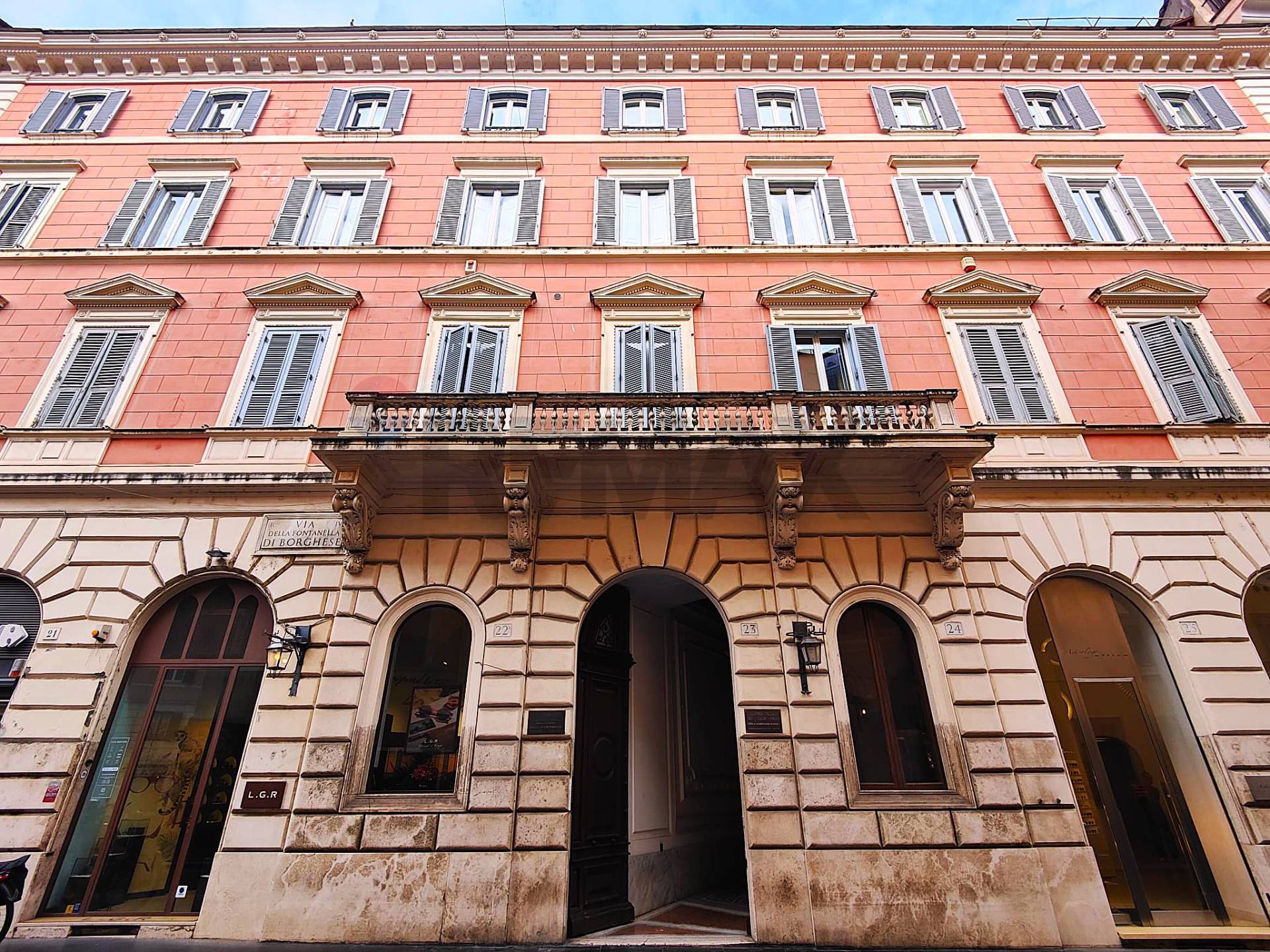 Via della Fontanella di Borghese si trova nel cuore del centro storico di Roma, nel prestigioso rione Campo Marzio, a pochi passi da piazza di Spagna, dal Parlamento e dalle vie dello shopping come Via dei Condotti e Via del Corso. La via prende il nome da un'antica fontanella a vasca addossata al muro di Palazzo Borghese, alimentata dall'Acqua Vergine. L'area offre un contesto raffinato e tranquillo, ideale per attività professionali grazie ad una vivace rete di servizi, hotel, boutique, ristoranti e collegamenti con il trasporto pubblico.