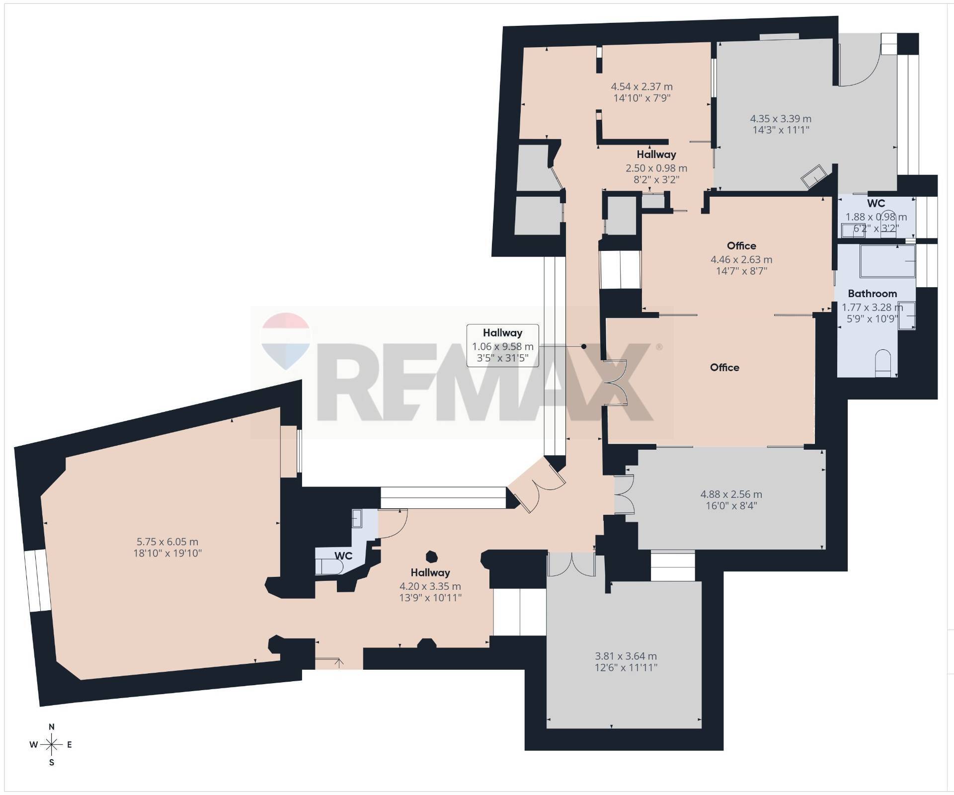 L'Ufficio è composto da un ingresso con reception e bagno per gli ospiti, una grande sala d'attesa di circa 35mq con finestra sulla corte interna, due studi di cui uno con veranda e bagno, un laboratorio e una sala di circa 40mq, divisibile in tre ambienti da pareti mobili azionabili elettricamente ed un terzo bagno con vasca. Gli affacci sono su cortili interni, silenziosi e luminosi