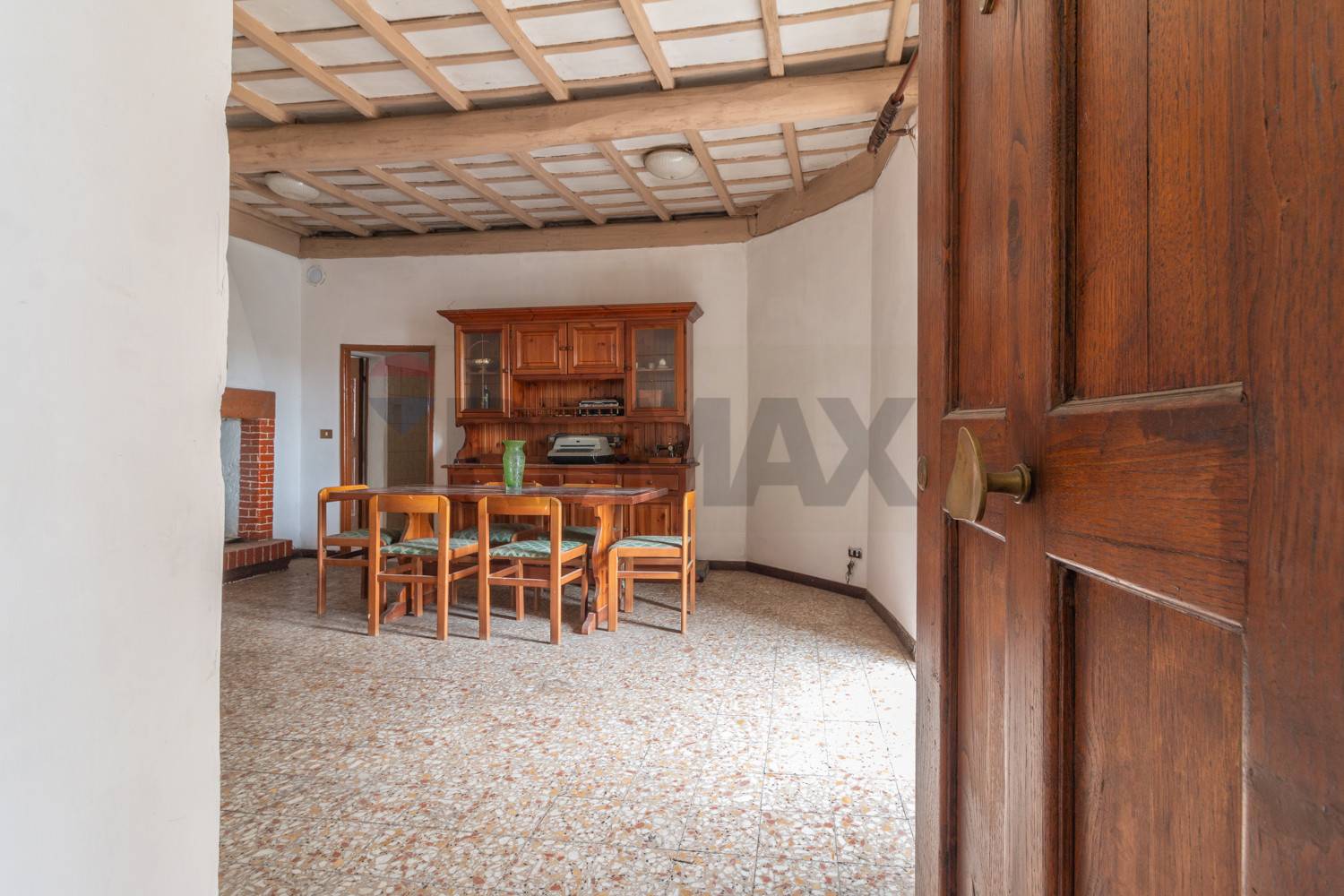 Gli ambienti sono valorizzati dalla presenza di soffitti in legno, che conferiscono carattere storico all'immobile.